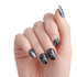 • Dark black oval press on nails short, 28 glow-in-the-dark fake nails with a magnetic powder effect